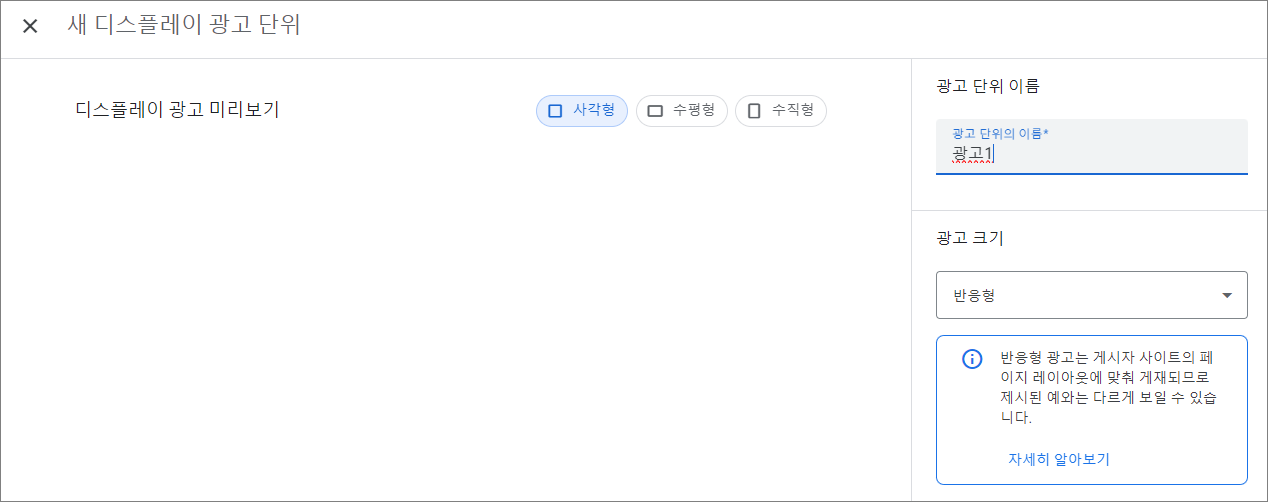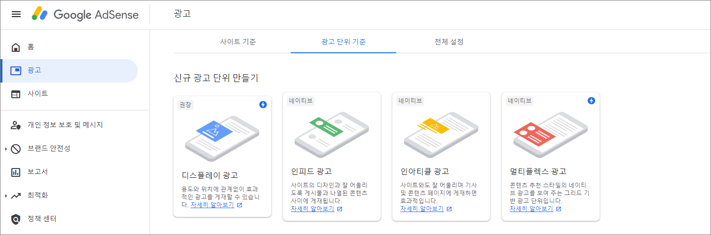 [광고 단위 이름] 을 만들어주고 완료하여 저장한다.